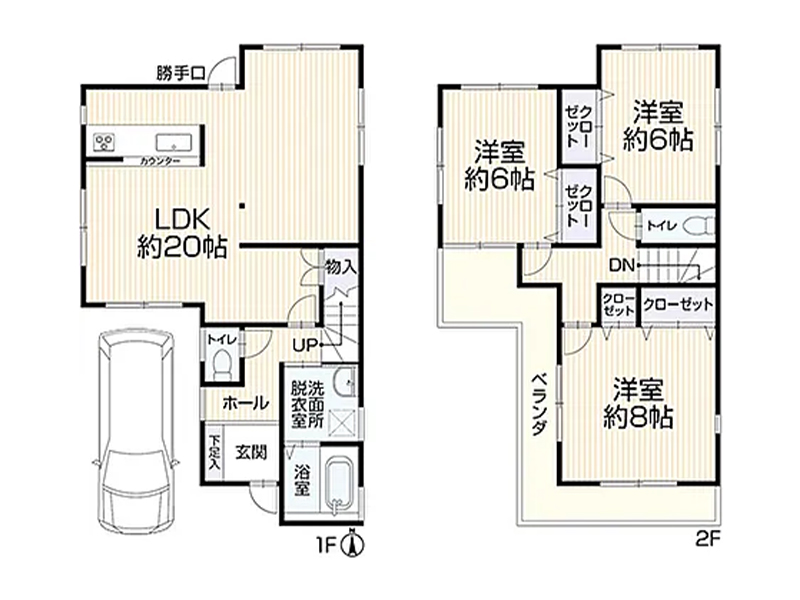 東南向・日照良好・嫻靜的住宅地,20.5貼寬敞客廳・室內車庫
