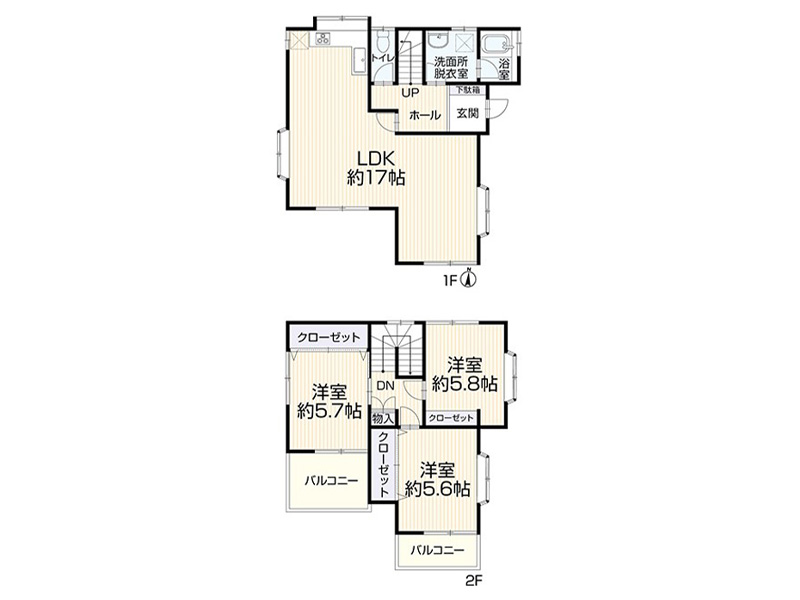 知名企業施工輕量鋼架造2層建一戶建,5LDK・全室朝南向,日照・通風良好