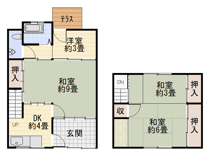 ■房產類型中古一戶建■銷售價格: 980萬日元 ■地址: 大阪市生野区桃谷4丁目■交通: JR大阪環状線「桃谷」歩14分■土地面積: 61.51㎡■建物面積: 73.35㎡■格局: 4DK