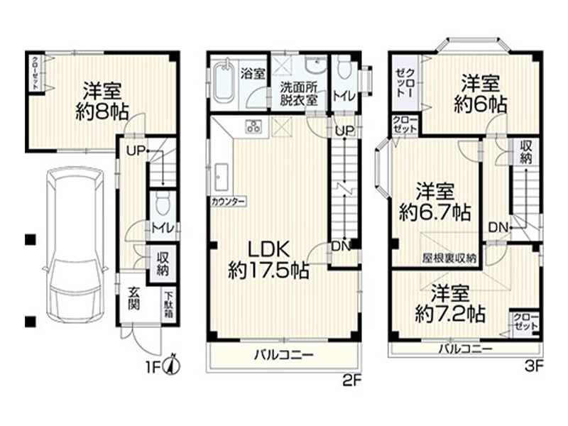 ■房產類型:新建一戶建■房產售價: 3,680萬日元■地址: 大阪市西淀川区姫里2丁目■交通: 阪神本線「姫島」歩5分■土地面積: 53.75㎡■建築面積: 82.59㎡■格局: 3LDK